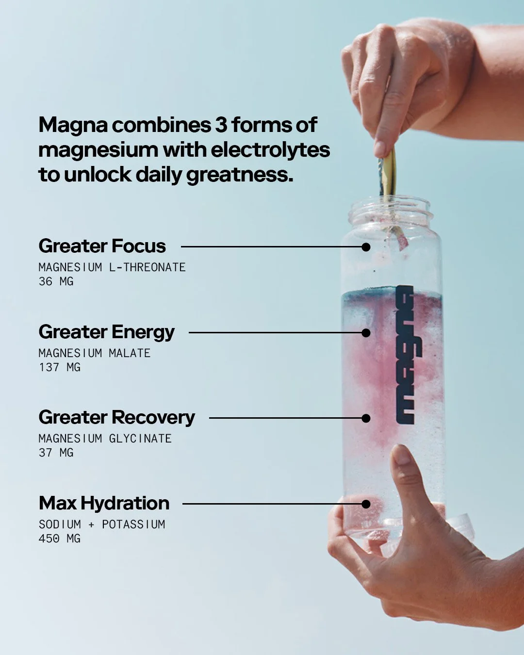 Magna launched in the summer of 2024 with support from world class athletes, active influencers, and a small group of early adopters. Digital ads for Magna targeted both the scientific benefits of the supplement but also the lifestyle that it encourages. Using straightforward copy, active lifestyle imagery, and clean product photography these ads introduced Magna to a larger audience and provided essential information to prospective users.